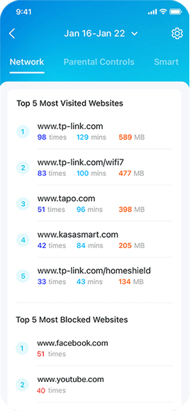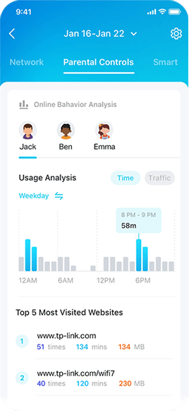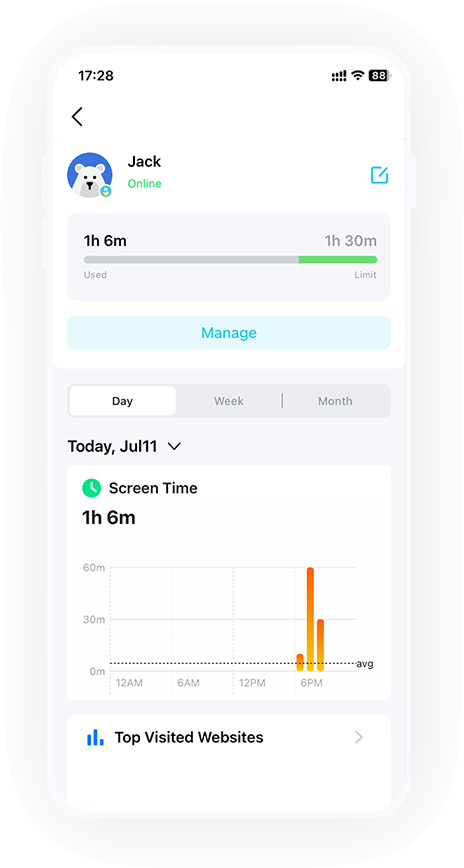 Have a clear picture of how much time each family member spends online and receive browsing advice.